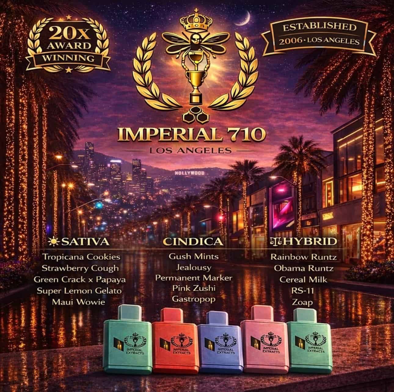 GREEN CRACK X PAPAYA, MAUI WOWIE, STRAWBERRY COUGH, SUPER LEMON GELATO, TROPICANA COOKIES